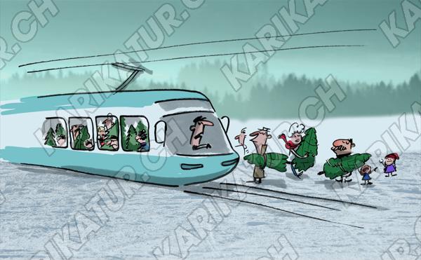 Tags: Schweiz Wald Postkarte Familie Kinder Zürich Illustration Zeichnung lustig witzig Witz Sympathisch farbig Mischtechnik Werbung Fantasie Verkehr Kinderbuch Weihnachten Weihnachtszeit Winter Modern Geschichte Pinsel Mädchen Baum Plakat Kinderillustration Verkauf Tannenbaum Jacke Christbaum Tram Transport Kurier
